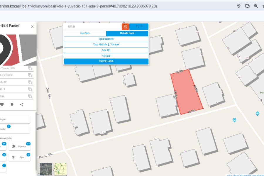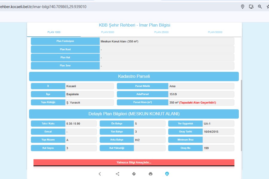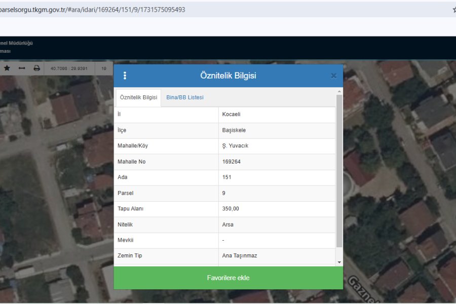 BAŞİSKELE/Ş.YUVACIK ADA: 151 PARSEL: 9 350M2